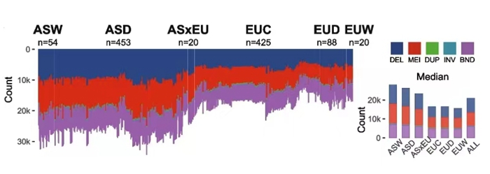 为此,研究人员收集了全球101个猪品种,共1060头猪的基因组测序数据,构建了猪基因组的全面结构变异图谱,鉴定到数百万个结构变异事件。利用欧洲和亚洲猪品种之间的结构变异重建了品种的祖先和杂交过程,解析了结构变异对基因表达、功能元件和经济性状的影响。该研究为猪的品种改良奠定了理论基础。