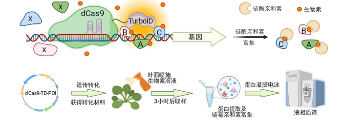 科研团队创新性地将DNA结合蛋白dCas9与标记酶TurboID融合,构建了邻近空间蛋白标记系统系统。该系统可精准定位至基因组特定序列,并对附近结合的蛋白进行标记与富集鉴定,实现了对调控因子的“精准捕捉”。