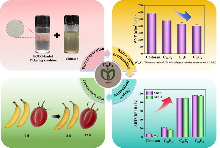 近日,中国农业科学院麻类研究所可降解材料开发与利用创新团队利用双水相皮克林乳液(ATPPE)和壳聚糖制备了一种新型活性包装膜,有效延长了香蕉等水果的货架期,为水果保鲜提供新的解决方案。相关成果发表在《食品化学(Food Chemistry)》上。