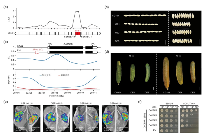 科研团队通过精细定位与驯化分析鉴定到CsCEPR1基因启动子区存在一个与种子大小显著相关的插入缺失变异。该变异破坏了关键顺式作用元件,从而降低基因表达。该基因过表达株系的种子变小、休眠性增强,且果实变短。该基因编码蛋白作为C-末端编码肽的受体,可与4个小肽互作。进一步发现,该基因通过负反馈调控生长素通路影响种子与果实大小。该研究揭示了黄瓜驯化过程中种子与果实性状协同演化的分子机制,为作物进化研究和瓜类分子育种提供了新视角与靶点。