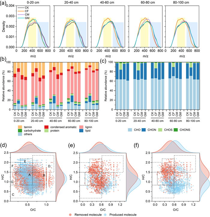 该研究解析了绿肥与牛粪对土壤可溶性有机质分子转化及碳稳定性的影响。结果表明,在0-40厘米土层中,绿肥在提升土壤可溶性有机质含量与分子稳定性方面效果与牛粪相当,并通过增加其分子量、芳香化与腐殖化程度,进而降低了生物可降解性。在40-100厘米,绿肥处理下的可溶性有机质化学多样性更高。绿肥还促进类木质素组分向单宁和稠环芳香类化合物转化,加速稳定性碳的积累。该研究为利用绿肥增强土壤固碳能力提供科学依据。