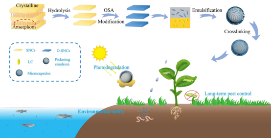 传统农药在施用过程中存在利用率低、残留高、对非靶标生物毒性大等问题,严重影响农业可持续发展。为此,研究团队聚焦于绿色农药新剂型的研发,利用天然可再生的淀粉资源,通过技术改造,构建了高效、安全、可降解的农药递送系统。