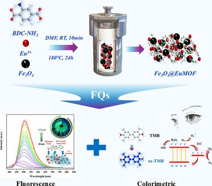 近日,中国农业科学院农业质量标准与检测技术研究所农业标准物质创新团队成功开发出一种稀土金属有机框架的磁性复合纳米传感材料,该材料可用于荧光和比色双模式检测食品中的氟喹诺酮类药物。相关研究成果发表在《食品化学(Food Chemistry)》上。