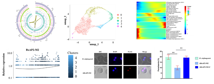 该研究建立了巴贝斯虫高质量基因组与单细胞无性发育图谱,并通过实验证实,转录因子BxAP2-M2可调控虫体入侵相关分子网络。该发现为阐明巴贝斯虫无性繁殖的发育过程、挖掘潜在干预靶点提供了重要理论依据与数据支撑。