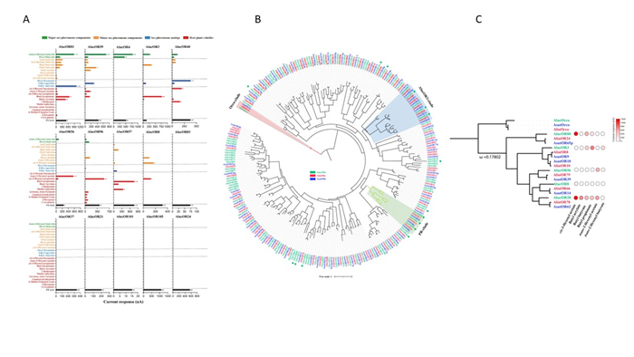 该研究发现,寄主植物挥发物与性信息素混合物对绿盲蝽雄虫的吸引力显著高于单独的性信息素组分。分子层面的深入研究发现,数个气味受体具有双功能性,对性信息素成分和花香酯类均表现出高敏感性。基于此,提出了“化学信号协同增效模型”,为深入理解植食性昆虫“定位配偶-识别寄主”的协同策略提供了分子层面的理论支撑。该研究为设计高效的绿盲蝽“性信息素-寄主挥发物”协同引诱剂提供了精准靶标。