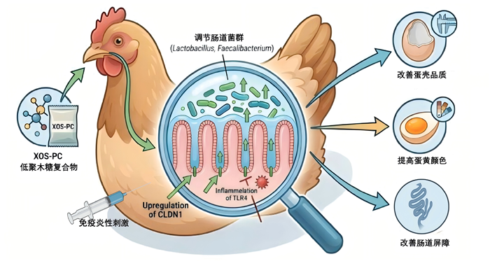 在现代蛋鸡养殖中,各种应激因素常导致肠道屏障受损和免疫功能下降,从而影响产蛋性能和蛋品质量。科研团队试验发现,在饲料中添加0.2%的益生元复合物可显著提高蛋鸡的产蛋率和饲料转化率,并促进蛋黄色素沉积。进一步分析表明,该复合物能够增强肠道屏障功能、抑制炎症反应,并通过提升肠道微生物多样性、增加乳酸菌等有益菌丰度,从而改善肠道健康。该研究为蛋鸡精准营养调控与健康养殖提供了参考,也为开发新型功能性饲料添加剂、推动家禽养殖可持续发展提供了科学支撑。