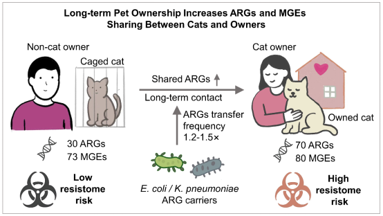 近日,中国农业科学院饲料研究所宠物营养与食品创新团队系统评估了长期养猫过程中宠物与主人之间抗生素耐药基因传播的潜在风险,为认识伴侣动物在耐药性传播中的作用提供了新的科学证据。相关研究成果发表在《环境国际(Environment International)》上。